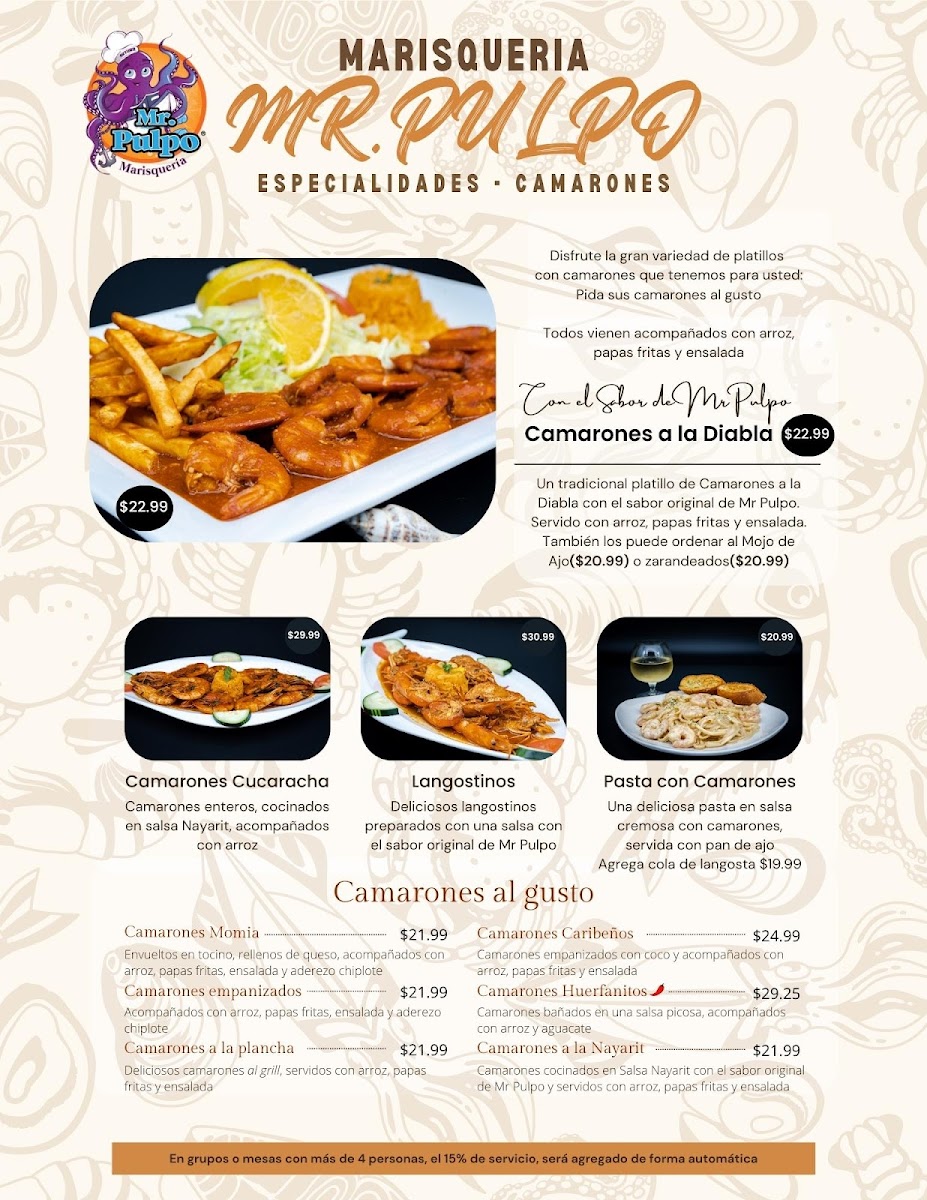Welcome to Mr. Pulpo Marisqueria, your go-to destination for authentic Mexican seafood in Indianapolis. Located at 3902 Georgetown Rd, this vibrant marisqueria prides itself on fresh ingredients and a passion for flavor.